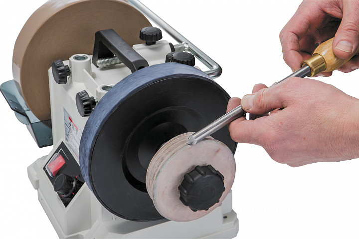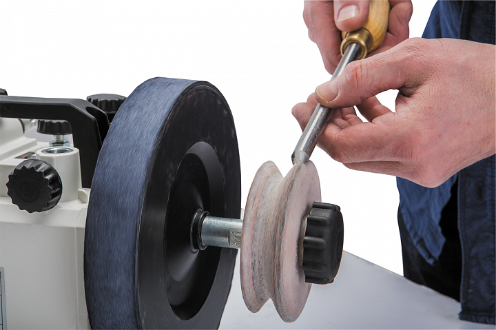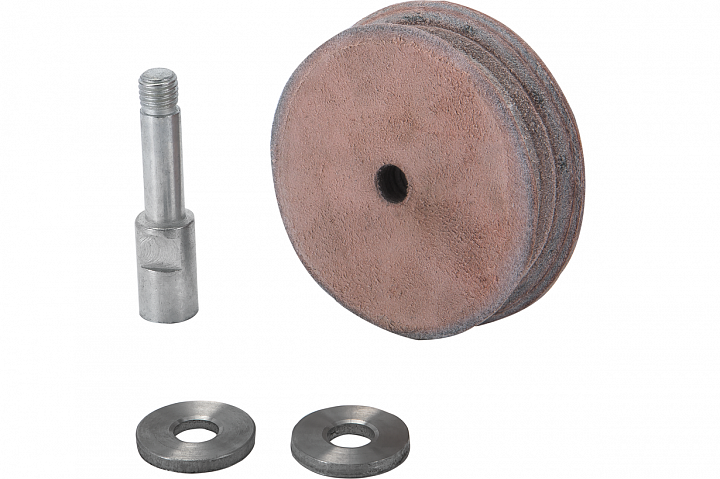 Круг из натуральной кожи для полирования и доводки стамесок с жалом V-образного профиля и для обработки труднодоступных областей кромок других инструментов